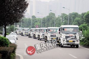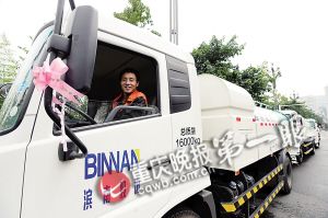 新人在灑水車隊(duì)前留影